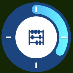 2. In this image, the topic goes up to a Maths-Age of thirteen. The image indicates that the student has currently covered content for this topic up to a Maths-Age of seven, and is a quarter of the way through the work for Maths-Age eight. As previously mentioned, the line around the latest dot aligns with the outer line of the topic badge.