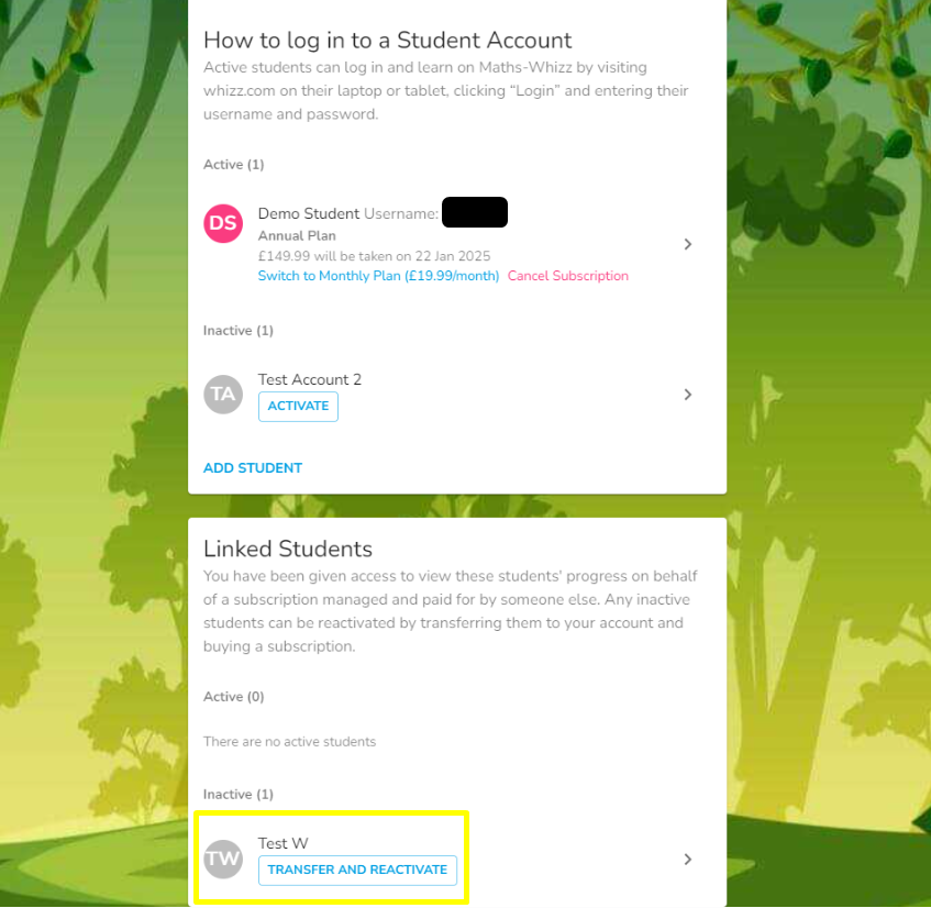 If your child received their account through their school and the account is now inactive, contact your child’s classroom teacher for information about the school’s licence and account allocation.