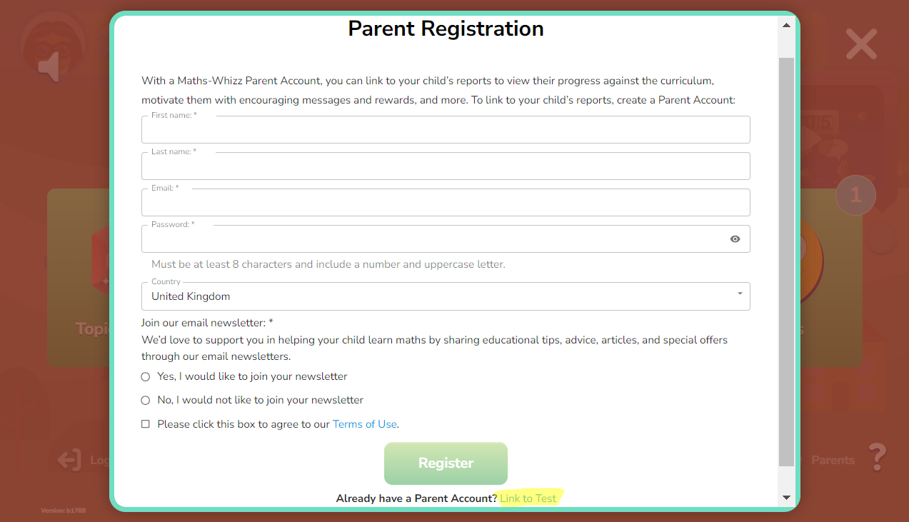 NB: Once registered you log in at whizz.com/login/ not through your child's account. Your username will be the email address you used to register for the Parent Account.